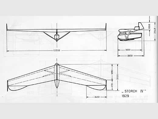 | Infos techniques | L'efficacité des ailerons de la Storch III était insuffisante. Lippisch installa donc des ailerons à cambrure supérieure, dont l'axe de rotation formait un angle de 90° par rapport à l'axe longitudinal du planeur. Cette disposition des ailerons s'inspirait de la forme et de la section transversale des ailes de l'Etrich Taube (elles-mêmes inspirées de la graine de Zanonia). À l'exception des modifications apportées aux surfaces de contrôle, l'aile était toujours la même que celle du Storch I. | ||||||
