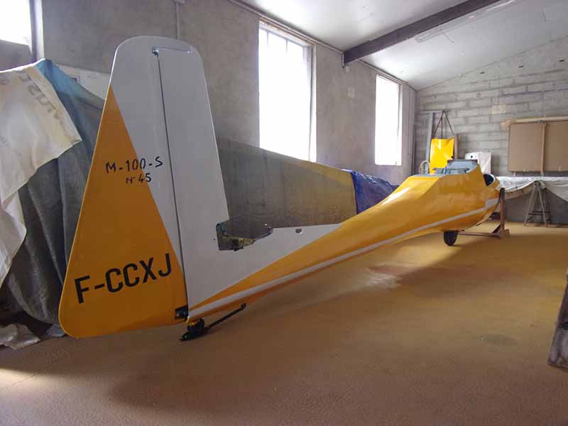 Début de restauration après transport du planeur depuis La Montagne Noire. Ancien propriétaire : Louis DIRAT, Cahors-Lalbenque (Lot, France)
