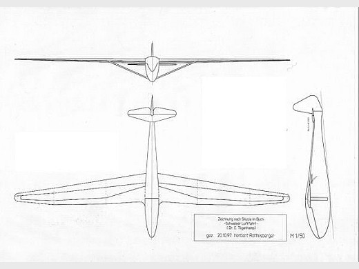 | Liens WEB | Site : WLM Modellbau . Texte + nombreuses photos + specs. (2010-01-26 CL) Site : Scale Soaring UK . Texte + 6 photos + plan 3 vues. (2010-03-21 CL) Site : Clubzeitschrift der Segelfluggruppe Olten . Article Laminarprofile, Werbung Brunner. (2010-04-25 CL) Site : Segelflugruppe Cumulus . 2 photos. (2010-04-25 CL) Site : Vôo a vela em preto e branco . Photo du PT-PCC brésilien. (2013-11-29 CL) |
