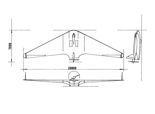 | Infos techniques | Projet de 1936 de planeur à propulsion humaine : deux rameurs et un pilote. | ||||||