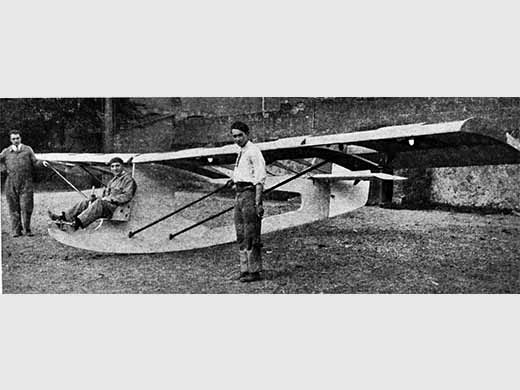| Infos techniques | Petit monoplace d'école pour passer les brevets A et B de vol sans moteur. Poutre monobloc caisson très robuste, le pilote étant assis directement sur le patin, qui, très galbé, pardonne les atterrissages anormaux, les efforts s'étalant d'autre part dans le large caissonnage central. Haubannage par mâts permettant le montage rapide sur piste, et évitant les tensions des haubannages souples. Voilure porteuse et grande manoeuvrabilité. Grande stabilité et faible vitesse d'utilisation. "Poutre monobloc-caisson. Profil mince ou épais à volonté." | ||||||