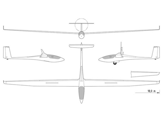 | Infos techniques | Moteur : Diamond AE50R (type Wankel) 294 cc, refroidissement par eau, 50 CV (37 kW) @ 7500 tr/mn. Moteur sur pylône rétractable. Hélice tractive. Volets de courbure, roue rétractable et water-ballast. Les ailes sont équipées de turbulateurs pneumatiques. Empennage en T. | ||||||