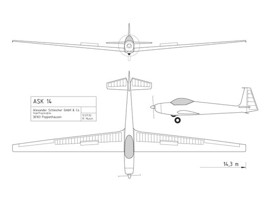 | Histoire résumée | R. KAISER avait calculé un motoplaneur appelé K-12 en novembre-décembre 1965. Et il s'écoula 15 mois avant le premier vol du premier prototype : 15 avril 1965. Immatriculé D-KOGA (son numéro de série était 12001M, le M peut-être pour Motor, en tout cas pour ne pas confondre avec l'AS-12 (qui sera rebaptisé ASW-12) en développement au même moment chez Schleicher) il était la propriété de Rudolf Kaiser. Le deuxième prototype (D-KOGE, n° 12002M) fut réservé à Werner Schleicher, le cadet des deux fils d'Alexander Schleicher. Le motoplaneur de production sera appelé ASW-14 afin de ne pas risquer de confusion avec l'AS-12, qui sera lui, rebaptisé ASW-12. Au cours du printemps 1971 un moteur Wankel fut monté sur le prototype K-12 D-KOGE n° 12002M de Werner Schleicher. Mais après quelques vols, ce dernier ne fut pas satisfait et fit remonter l'ancien moteur sur son appareil. Le même type de moteur fut aussi testé sur l'ASK-14 n° 14055 D-KICG du FLugsportgruppe Sachs de Schweinfurt, qui fut équipé d'un Sachs KM 29 (Wankel "rotatif", 540 cc, 20,6 kW à 3400 t/mn). En 1976, l'appareil totalisait 750 heures de vol avec ce moteur. | ||||||||