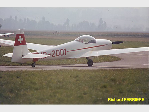 | Infos techniques | Moteur Hirth SOLO F 10A 1a, 26 CV à 5000 t/mn. Réservoir 20 L (carburant AVGAS 80/87), autonomie 2 h. Hélice Hoffmann V 42/48 diamètre 1,36 m. Taux de montée 2,75 m/s à 95 km/h. | ||||||||