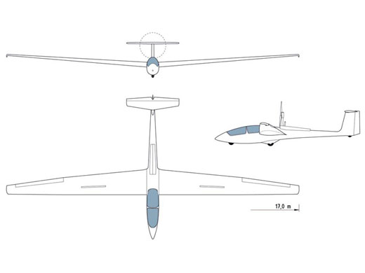 | Infos techniques | Mêmes caractéristiques que l'ASK-21. Empennage en T. Moteur rotatif Wankel IAE 50R-AA 294 cc, à injection de 54 CV (41 kW). C'est le moteur le plus sobre de tous les planeurs motorisés. Il peut être commandé depuis les deux places. Le réservoir de 26 litres permet de parcourir environ 500 kilomètres. Moteur sur pylône rétractable. | ||||||