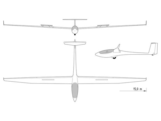 | Infos techniques | L'ASW-27B est équipé de volets de courbure, winglets (rallongés par rapport à l'ASW-27, d'un train rentrant et d'un système de ballast (structuraux alors qu'il sont souples dans l'ASW-27). Empennage en T. | ||||||