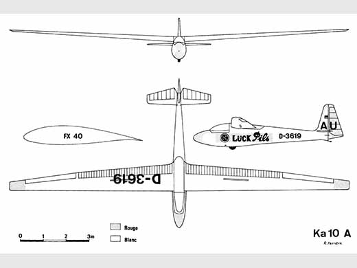 | Liens WEB | Site : Alexander Schleicher . 3 vues + specs. (2014-02-19 CL) Site : Wikipedia . Note + specs. (2013-01-24 CL) Site : Sailplane Directory . Note + photo + specs. (2014-02-19 CL) Site : Forum RC-Network . Ka 10 A M = 1:2,07 construit comme l'original. (2014-02-19 CL) |