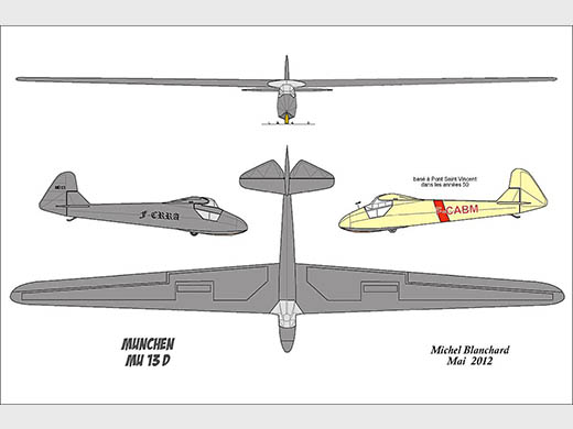 | Autres sources | VGC News n° 113 (hiver 2004) p 38. Note + photo du Mü-13D2 F-CRRA à Gliwice, été 2004. The Mu 13 flight tested, par Philip Wills, Sailplane and Glider, janvier 1946. Texte + photo. Leland Cowie's Mü 13d-3 N13MU, par Vincenzo Pedrielli, RC Soaring Digest vol. 29 n°9, septembre 2012, p 60-85. Texte + 42 photos. Akaflieg München Mü-13, Le magazine du musée régional de l'air n° 114, printemps 2013, pp 16-18. Texte + 4 photos. |
