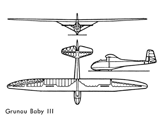 | Infos techniques | Se distingue du Baby IIB par les formes de la partie inférieure du fuselage et du patin, la présence d'une roue, et le dessin des empennages. Aérofreins Shemp-Hirth. Le Baby III pouvait être livré soit avec un cockpit ouvert et un petit pare-brise, soit avec une verrière fermée. | ||||||||