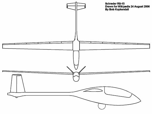 | Liens WEB | Site : Schreder Sailplane Designs . A Resource for Builders and Owners. (2009-12-29) Site : Soar Idaho . Note + specs. (2015-01-29 CL) Site : Sailplane Directory . Note + photo + specs. (2015-01-29 CL) Site : Soar Idaho . Page RS-15. (2015-01-29 CL) Site : Wikipedia . Texte + plan 3 vues + specs. (2015-01-29 CL) |