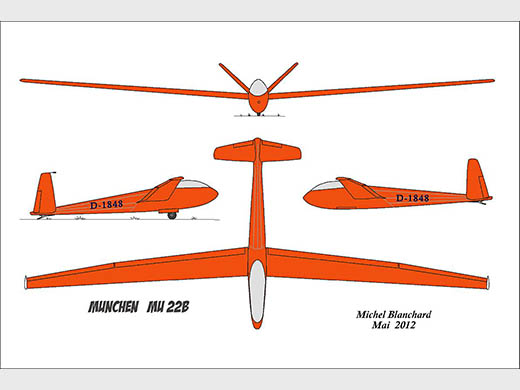 | Infos techniques | Le Mü-22B était le successeur du Mü-22A dont il reprenait les principes de conception, mais avec un fuselage construit en composite résine et fibre de verre. Empennage en V.