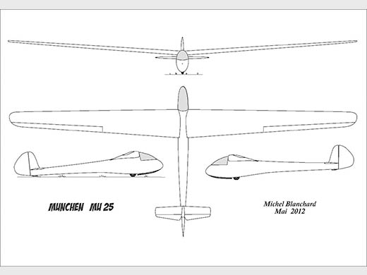 | Histoire résumée | Le Mü-25 devait être un planeur d'essais de grande performance. Pour le fuselage en tube d'acier, un revêtement en plastique a été prévu. Le projet n'a pas abouti. | ||||||