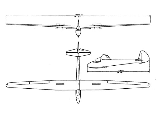 | Histoire résumée | Planeur de haute performance, évolution du Gull 4 dont il se distingue principalement par une envergure augmentée de 3 mètre. La verrière de Perspex et moulée par soufflage. Construction principalement en contreplaqué de Pin Stika et de bouleau. Les palonniers de dérive sont réglables en vol. Type 34A Sky 1 : Premier vol en septembre 1950. Philip Wills gagna le championnat du monde sur ce planeur en 1952 (en Espagne, seul titre anglais de l'histoire). Type 34B Sky 2 : Version améliorée du Sky 1, dessiné pour les championnats du monde de 1954 (profil NACA 64-3-618). Resté à l'état de projet. | ||||||