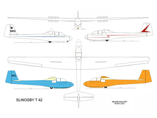 | Liens WEB | Site : Flight Global . Vue éclatée. (2010-05-15 CL) Site : Wikipedia . Histoire + une photo + specs. (2010-05-15 CL) Site : R. Cawsey . Appareils immatriculés. (2010-05-15 CL) Site : Gliding Heritage Centre . Guide de référence des productions Slingsby. (2014-05-12 CL) Site : Richard Cawsey . Liste des T-42 Eagle. (2014-10-21 CL) Site : Hangar Flying . Première traversée de la Manche par un biplace, par Bob Werhegghen (14 mai 2021). (2021-05-19 CL) |