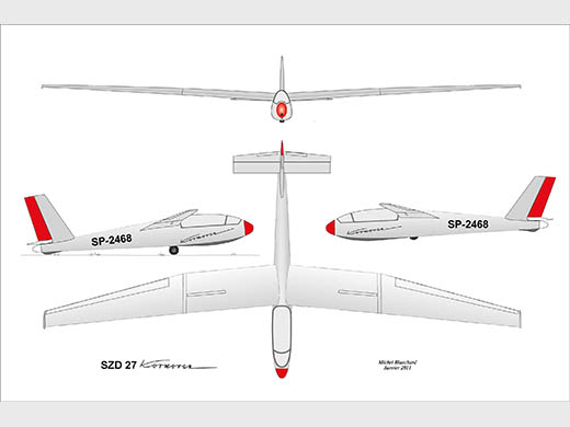 Segelflugzeug, das auf Anforderung des Polnischen Aeroclub für zweisitzige Schul-, Trainings- und Kunstflugsegler konstruiert wurde. Die Konstruktion ist unter der Leitung von Ing. Józef Niespa?a in den Jahren 1961/62 entstanden. Es wurde das einzige Segelflugzeug in der SZD- Geschichte, das eine Vollmetallkonstruktion aufweist. Am 02.01.1965 ist der erste Prototyp von Adam Zientek eingeflogen worden. Der Segler ist nicht in der Serie gebaut worden. Es wurden insgesamt 2 Prototypen gebaut. Davon befindet sich einer im Museum in Krakow (wird aber momentan nicht ausgestellt), das zweite Exemplar flog bis in den Anfang der 90er Jahre in Modlin. Der zweite Prototyp hatte aufgrund durchgeführter Flugerprobungen ein vergrößertes Seitenruder. Das Exemplar wurde um 1995 durch einen Piloten aus Grudziadz gekauft und trotz, dass der in gutem Zustand ist, kann er wegen fehlender Ressourcen (600 h) nicht weiter geflogen werden. |