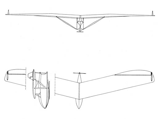 | Infos techniques | L'aile de cette aile volante, très inspirée de la Storch d'Alexander Lippisch, est de même forme que celle de l'Astore. La masse à vide donnée inclut le moteur, bicylindre de 25 CV à refroidissement par air. Hélice propulsive. | ||||||