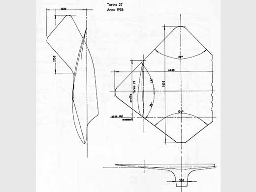 | Histoire résumée | Modèle de soufflerie de Flaminio PIANA CANOVA, du laboratoire d'aéronautique de l'Institut Polytechnique de Turin, pour étudier le comportement des ailes rhomboïdales. | ||||||