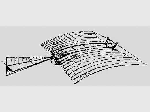 | Infos techniques | George Cayley's 1799 design of had fixed wings for lift, a movable tail for control, and rows of "flappers" beneath the wings for thrust. | ||||||
