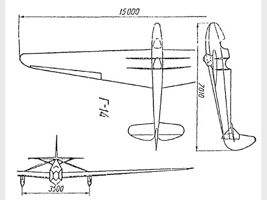 | Histoire résumée | Biplace d'entraînement à la voltige et au remorquage. Deux prototypes ont été construits : l'un dans les ateliers de l'Académie de Joukovski, et l'autre à l'usine d'aviation n° 1 du nom d'Aviakhim. Le destin du planeur "Académique" est inconnu. L'autre prototype a participé au concours de Koktebel à l'automne 1934. Le grand volume du fuselage, la grande résistance, le train d'atterrissage à roues et la bonne contrôlabilité ont permis au G-14 d'être utilisé dans diverses expériences techniques. À cette fin, plusieurs versions plus spécialisées du G-14 ont été produites avec la participation directe et les conseils du concepteur. - Le prototype d'usine a été transformé en ravitailleur pour mener des expériences sur le pompage du carburant en vol. Le premier transfert d'essence d'un planeur à un avion remorqueur a eu lieu le 24 mai 1935, à une altitude de 1200 m, lorsque 150 kg d'essence ont été transférés du planeur G-14 (planeur Kuzmin) à l'avion remorqueur R-5 (pilote Baranov) en 15 minutes. - Après le succès de cet essai, il a été décidé de construire une variante spéciale du planeur - le G-14 TsL-2A ou G-14 Flying Tanker (G-14 CL-2A). 1935. Des réservoirs d'essence supplémentaires et le poids en ordre de vol porté à 780 kg, après des nouveaux calculs de vérification de la résistance structurelle et renforcement de certains éléments du planeur. Le carburant était placé dans cinq réservoirs en aluminium soudés : quatre dans les sections d'emplanture des ailes (deux de chaque côté) et un dans le fuselage à la place du cockpit arrière. La capacité totale de carburant du Flying Tanker était de 500 litres. * G-14 Ts "chainlet" / G-14 Ts "chain". Développant l'idée du remorquage à haute altitude, qui a été utilisé pour la première fois sur le G-9, l'ingénieur SHCHERBAKOV suggéra d'utiliser la méthode de la "chaîne", où plusieurs planeurs sont remorqués l'un après l'autre, chaque planeur suivant volant plus haut que le précédent. Pour tester cette méthode, Scherbakov utilisa deux planeurs Gribovsky - G-14 et G-9. Le premier derrière le remorqueur TB-1 était le G-14, suivi du G-9. De nombreux vols de la "chaîne" composée du remorqueur TB-1, du maillon intermédiaire G-14 et G-9 ont été effectués. Au début du mois d'avril 1936, les résultats suivants ont été enregistrés : le TB-1 a volé à 5000 m, le G-14 à 6000 m et le G-9 à 7000 m. [une altitude maximale de 12.105 m aurait été atteinte en 1936-37] - Un G-14 destiné aux vols à haute altitude a été équipé d'un cockpit pressurisé, suivant la proposition de l'ingénieur A.Y. SHCHERBAKOV [G-14 GK, 1936] En plus des exemples construits, Gribovsky avait des projets de transformation du G-14 en motoplaneur : - G-14 MP – projet de 1936 dans lequel le moteur de faible puissance devait être placé sur un pylône au-dessus du fuselage. - G-14 RP – toujours en 1936, projet d'installation d'un moteur fusée pour tester en vol le moteur à ergols liquides RDA-150 conçu par L.S. DUSHKIN et V.A. SHTOKOLOV (ce moteur avait été testé sur l'avion-fusée RP-318, monté sur le planeur SK-9 de SP KOROLEV). | ||||||||