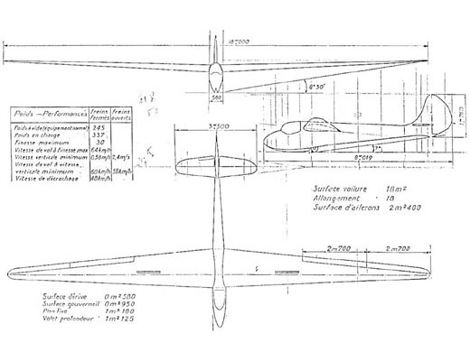 | Autres sources | Soaring juillet-août 1947, p 9. Photo. Soaring septembre-octobre 1947 Photo de couverture. L'Aérophile décembre 1946, 54ème année No 3, p.278, 3-vues + specs. |