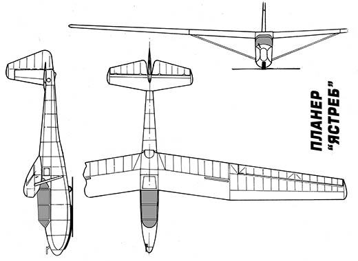 | Histoire résumée | In 1953 the Central Committee of DOSO (Voluntary Organization for Support of Defense) announced a design competition for a two-seater training glider which would meet the demands of the ever growing flying clubs, where the existing "Jeravs" and "Pioneers" obviously were not able to do this. Aircraft engineers Luben Panov and Dimitar Panchovski in collaboration with the Musachevo workshop's designer Raska Radomirov won the competition with this glider. The construction of the prototype had been started in 1957 and was completed in early 1958. Tests justified that the design is good one. The glider named "Jastreb" was cleared to fly simple aerobatic figures. A series of 10 gliders were built to replace "Jeravs". | ||||||