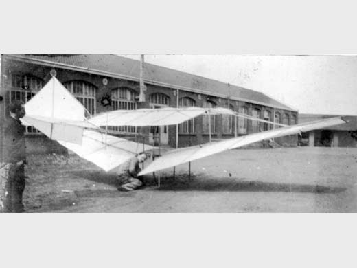 | Infos techniques | Le planeur est un appareil semi-cellulaire (on pourrait dire biplan, ou même sesquiplan inversé, la petite aile étant au-dessus du plan principal). Il est muni d'une queue stabilisatrice cruciforme et pèse au total 25 kilogrammes. Cet appareil est construit de telle façon qu'il peut être aisément replié et ses dimensions d'encombrement peuvent être ainsi réduites à 1m,30 X 2m,50 X 2m,60. Le plan inférieur présentait un important dièdre, qui fut supprimé dans une deuxième version de 1909. | ||||||