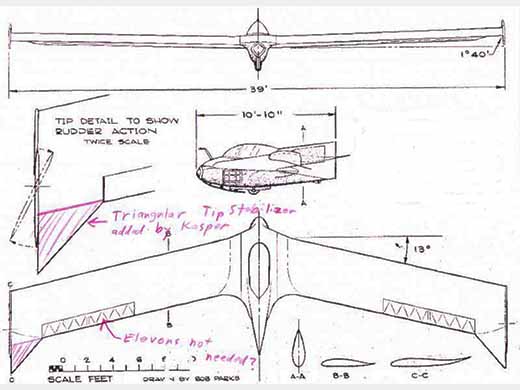 | Infos techniques | Par rapport à la BKB-1, les modifications les plus visibles portent sur les gouvernails de bouts d'ailes et l'ajout d'un triangle au bord de fuite des saumons. Fuselage en bois, revêtement intégral en contreplaqué. Verrière moulée en Plexiglass. Patin amorti par des boudins en caoutchouc. Corde aérodynamique moyenne : 1,22 m | ||||||