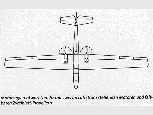 | Infos techniques | Le Lom-62 est un Lom-61 équipé de volets de courbure pour l'amélioration des caractéristiques de vol aux haute et basse vitesses, proposé en version planeur ou motoplaneur (deux moteurs au bord de fuite des ailes). Hélice propulsive. | ||||||