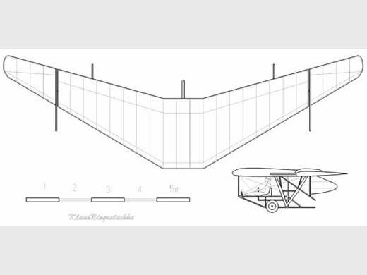 | Infos techniques | Ailerons en extrémités d'ailes. Le pilotage s'effectuait à l'aide d'extrémités d'ailes entièrement rotatives, qui remplissaient à la fois la fonction d'ailerons et de gouvernes de profondeur. La version motorisée a été équipée d'un moteur Bristol Cherub de 32 CV. Hélice propulsive. | ||||||