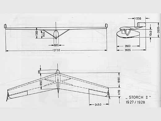 | Histoire résumée | Cette aile volante est directement dérivée de la Storch I. Fritz STAMER, pilote de la RRG effectua à la Wasserkuppe de nombreux vols d'essais à son bord. | ||||||