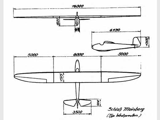 | Histoire résumée | Le Schloss Mainberg a participé au concours de la Rhön 1929, aux mains de DITTMAR. Mais en raison de quelques défauts mineurs il n'effectua que peu de vols. Il a ensuite été vendu au USA. | ||||||