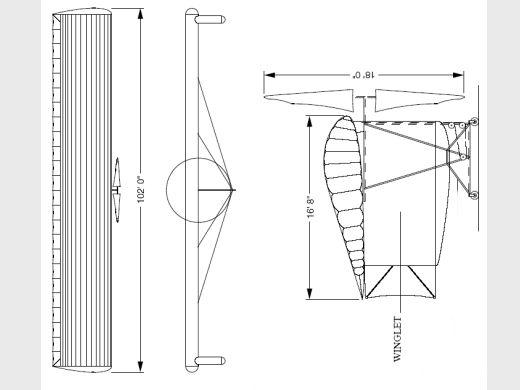 | Histoire résumée | Known as Phoenix, the aircraft was an experimental inflatable made entirely out of Polyester film which varied in thickness between 6 and 23 microns. The wingspan was 102 feet and the propeller was 18 feet in diameter. its all up weight was only 105lbs. The aircraft could be folded up and transported on top of a family saloon car. | ||||||
