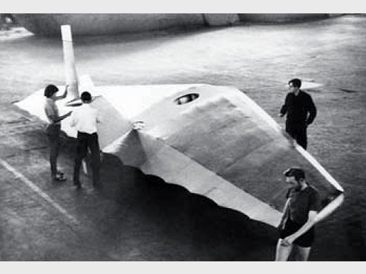| Histoire résumée | Daniel PERKINS, who had built several inflatable HPA which had not flown, (see above), met with success with his design of the Reluctant Phoenix, the first inflatable to fly. This plane was designed to fly very low, so that the height was a fraction of the chord of the wing, (see ground-effect in Glossary). Perkins had made some tests, and found a symetrical aerofoil to be appropriate. To quote Frederick To (Aerospace June/July 1985) and (Society of Automotive Engineers Inc) :- "The aircraft was a delta flying-wing with a wingspan of 31 feet (9.5 m) and an empty weight of 39 lb (17.7 Kg). The envelope of the wing was made of polyurethane-coated nylon fabric. Due to the high power requirement for cruise, the aircraft was limited to short hops under man-power as it was being flight tested inside an 800 ft (244 m) long airship hangar. About 90 flights were made. Reluctant Phoenix was successful in that it could be folded away and transported in the back of a small station wagon. It also survived many crashes without requiring repairs as the aircraft merely bounced when in collision with the ground. Shortly after Perkins's death the Reluctant Phoenix was handed over [to Frederick To], who immediately recognised the advantages of the system". This author visited Fred To and heard him praise the neatness of the design of the Reluctant Phoenix. The seat-frame was similar to the chassis of a recumbent road HPV, the pilot's control bar being below the knees. See Phoenix. |