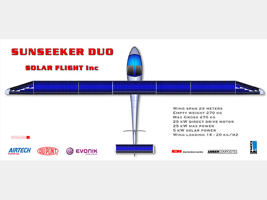| Liens WEB | Site : Gizmag . Sunseeker Duo makes first solar-powered passenger flight. Texte + photos. (2014-08-15 CL) Site : Gizmag . Solar-powered Sunseeker Duo takes flight. Texte + 9 photos. (2014-08-15 CL) Site : Solar Flight . Sunseeker Duo. Vidéos, album photos. (2024-01-20 CL) Site : YouTube . SUNSEEKER DUO First flight 2023. Vidéo 4'56. (2024-01-20 CL) Site : Sustainable Skies . Irena Raymond on Flying the Sunseeker Duo. (2024-01-20 CL) |