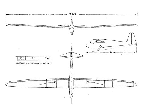 | Autres sources | Le planeur de performance B-6, Les Ailes n° 900 15 septembre 1938 p 13. Note + 3 photos + plan 3 vues |