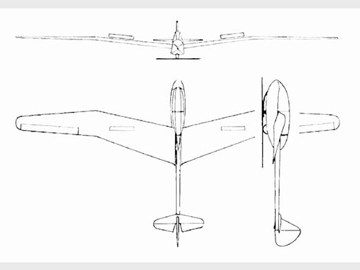 | Infos techniques | Biplace en tandem. Tragwerk: freitragender Mitteldecker in einholmiger Holzkonstruktion; Torsionsnase sperrholzbeplankt. Rest Stoffbespannung. Aufbau zweiteilig. Innenflügel mit 10 Negativpfeilung, Außenflügel gerade. V-Stellung 2 °. Störklappen im Innenflügel nach oben und unten. Rumpf: Stahlrohrboot mit Stoffbespannung und Duralbeplankung, Leitwerkträger aus Dural. Tandemsitze unter Vollsichthaube vor dem Tragwerk. Gefederte Kufe, Ballonrad. Schwanzsporn. Leitwerk: freitragende Holzkonstruktion, Flossen beplankt. Ruder stoffbespannt und ohne Ausgleich. | ||||||