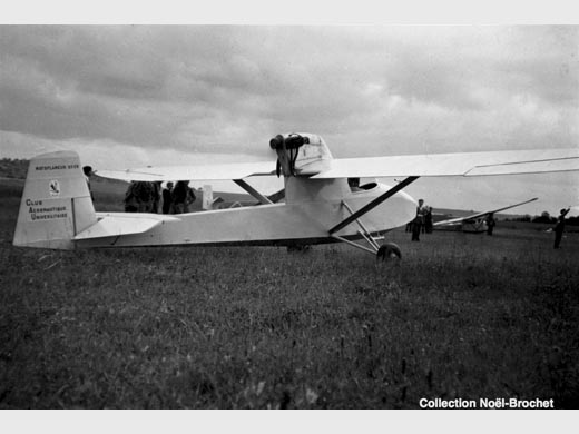 | Histoire résumée | En 1945, ou début 1946, les frères SIMILLE [Albert & X] demandent, pour le compte du Club Aéronautique Universitaire (C.A.U.) de Beynes, à Maurice Brochet de transformer un planeur Grünaü Baby II, en motoplaneur, en l'équipant d'un moteur AVA de 25 CV (matériels récupérés par le CAU après la guerre). L'appareil est essayé à Beynes-Thiverval, en juillet 1946, piloté par Éric Nessler qui le décolle sans difficulté du premier coup. Cette machine sera appelée "Brocheteau". [Extait AviaSport No 36 - Mai 1957] ... le veau qu'était devenu le Grunaü, qui avait cessé d'être un planeur sans pour cela devenir un avion. Le Grunaü motorisé montait péniblement à moins d'un mètre-seconde et il n'était pas question d'y mettre un pilote poids lourd. | ||||||