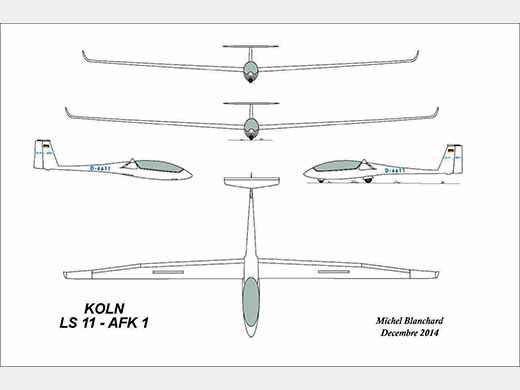 | Histoire résumée | En 2000, Akaflieg Köln a lancé le projet pour la conception d'un planeur nommé AFK1. Dans le but de réduire les couts, il fut décidé d'utiliser un maximum de composants standard LS dans le projet. Avec l'aide de Wolf Lemke pour les calculs aérodynamiques et structuraux, ceci a mené au projet qui fut également nommé LS11 par Rolladen-Schneider. Le but du projet est de concevoir et construire un planeur capable d'être utilisé pour l'école et également avoir de bonnes capacités en vol en campagne et en compétition. Le LS11 a des ailes modifiées provenant du LS6. Le Akaflieg Darmstadt D41, planeur biplace côte à côte dont le premier vol a eu lieu en 1993, a démontré que l'aile du LS6 avait de bonnes performances pour un biplace. Les étudiants de l'Akaflieg ont jugé qu'ils pourraient en profiter et améliorer cette conception. La structure d'aile a été redessinée et ressemble légèrement à celle du LS9. Les ailes ont été construite partiellement en fibre de carbone, à l'usine de Rolladen-Schneider à Egelsbach pendant l'été 2001, alors que les rallonges d'ailes proviennent des moules développés par le groupe de Darmstadt pour le planeur D41. Le projet LS11 a été présenté à l'état de prototype en 2003 et en 2005 à l'exposition aéronautique de Friedrichshafen. Le premier vol a eu lieu le 5 novembre 2005 (D-6611), Wolf LEMKE et Siegfried PIONTKOWSKI aux commandes, et normalement un programme d'essai de vol complet aura lieu en 2006. Les essais en vol seront effectués au terrain d'aviation de l'Akaflieg Köln. Le LS11 sera en production chez le constructeur slovène AMS-Flight. Si ceci se réalise, ce sera probablement le premier prototype développé par un Akaflieg qui aura atteint la mise en production. | ||||||