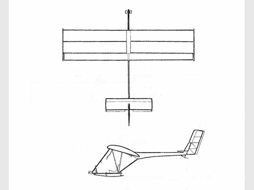 | Infos techniques | Premier planeur construit en matériaux composites par Bronius Oškinis. Le planeur le plus léger au monde (moins de 38 kg).