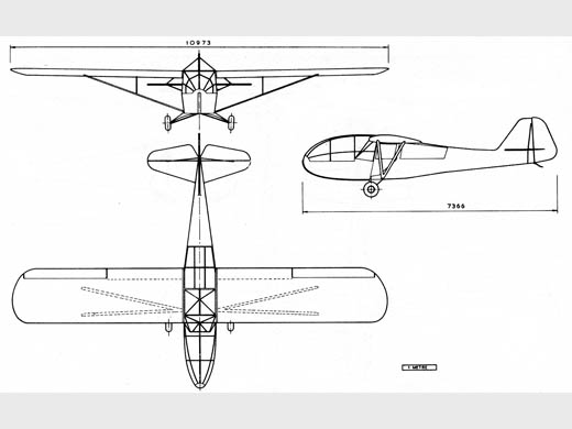 | Infos techniques | Version démotorisée du Taylorcraft Auster Mk. 3, l'avant étant modifié pour installer une troisième place.