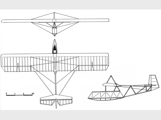 | Infos techniques | Planeur biplace à double commande. Fuselage en tubes d'acier soudés. Le cockpit est habillé de toile. Les ailes sont haubannées par des câbles d'acier. | ||||||