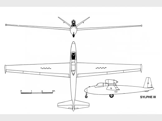 | Histoire résumée | Le Sylphe III est directement issu d'une évolution du Cyclone [Sylphe I] en Sylphe II. C'est, comme ses prédécesseurs, un planeur monoplace à réacteur auxiliaire. Le premier exemplaire effectue son "vol de contrôle" le 02 janvier 1952.
