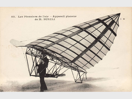 | Infos techniques | Les ailes du planeur Bünzli ont un dièdre de 14 degrés et sont articulées sur le fuselage en bois. Le siège de l'aviateur peut se déplacer sur un guide, de sorte que le centre de gravité peut être déplacé. Dans le même temps le déplacement du siège pilote modifie la position de la profondeur par l'intermédiaire d'une poulie. | ||||||