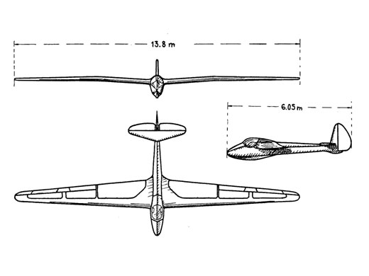 | Remarques | Spécifications selon ouvrage "Der Segelflug im Wettbewerb der Völker" Longueur : 5.90 Masse maximale : 200 kg Allongement : 15.6 Finesse maximale : 25 Taux de chute minimal : 0.68 | ||||||