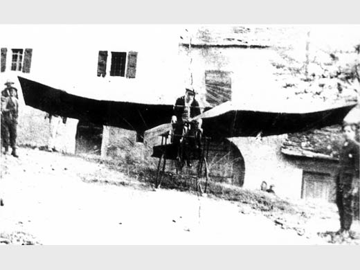 | Histoire résumée | Première tentative de vol par le jeune champion cycliste Luigi TEICHFUSS, avec une machine de sa conception. Mais sans succès ! | ||||||