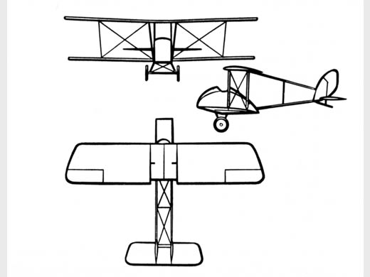 | Infos techniques | Le fuselage, simplement constitué d'une armature en bois, a été dessiné pour réutiliser des ailes d'un vieux biplan Vickers. La partie avant du fuselage est munie d'un carénage amovible. L'atterrisseur est formé de deux roues. L'empennage est constitué d'une double dérive et du stabilisateur. | ||||||