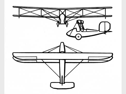 | Infos techniques | Biplan avec des ailes du grand allongement, ailes situé au-dessus du fuselage. La distance entre les plans est de 0,9 m. L'aile supérieure a été faite à l'égard de inférieure à 0,3 m. Le dièdre est de quatre degrés. Les ailes sont fixées par des haubans en bois et rigidifiées par des croisillons en câbles. Airfoil - Prandtl 387. Le fuselage a été faite de fils de fil-bois de tension et, a une section transversale rectangulaire avec un sommet arrondi, et la queue est allé à l'horizontale. Le poste de pilotage était situé en face du bord avant du plan inférieur. Axe de deux-roues train a eu lieu à l'intérieur du fuselage et a été suspendu sur amortisseurs en caoutchouc. Les gouvernes commandaient des ailerons, la profondeur et le gouvernail. | ||||||
