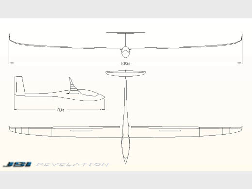| Infos techniques | La voilure est de forme elliptique, avec des winglets équipés de 6 volets/ailerons sur toute son envergure. Elle est faites en 4 morceaux. Il y a un système de soufflage de la couche limite sur l'intrados qui est réalisé par 2 rangés de trous au niveau des volets pour réduire la trainée. La charge alaire donnée est la valeur minimale. Elle peut être portée à 53,3 kg/m2 au maximum. La version de production est désignée JS-1B. Le Revelation est proposé en version 21 mètres, désignée JS-1C : surface alaire 12,25 m2 ; allongement 35,9 ; masse à vide 435 kg ; masse maximale 720 kg. | ||||||