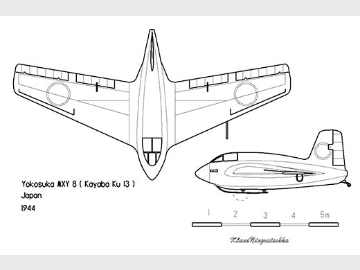 | Histoire résumée | The appearance of American B-29 Super fortresses over Japan in 1944, produced an urgent need for a high performance interceptor. Inspired by the Me 163 Komet, Mitsubishi engineers, using a German Walter HWK 109-509 rocket motor and an instruction manual for the Me 163B, designed the J8M1 Shusui (swinging sword) for the Japanese Navy, and the Army version, designated Ki-200. A glider version, the MXY-8, was also developed to provide data on handling characteristics of the J8M1 and to be used for rocket pilot training. A prototype glider was flown in early 1945, and subsequently placed in production. Similar training gliders were planned for the Army's Ki-200. A special corps of potential rocket pilots began training at Kashiwa Air Base in the spring of 1945, conducting test and training flights in preparation for the day when the rocket-powered fighters would be available. That day never came. The J8M1 first flew on July 7, 1945, but an engine failure shortly after takeoff resulted in a disastrous crash, killing the test pilot. There were no more flights prior to war's end, although J8M 1 production was underway, and a J8M2 and an advanced Ki-200, designated Ki-202, were planned. The Yokosuka MXY9 Shuka (秋花, "Autumn flower")[1] was a projected development of the MXY8 training glider, adding a small thermojet-style jet engine, the Tsu-11. It was intended to provide further training for pilots who were to fly the Mitsubishi J8M and Mitsubishi Ki-200 rocket-powered interceptor aircraft.None were built prior to Japan's surrender and the end of World War II. The Yokosuka MXY8 Akigusa (秋草, "Autumn grass") was a training glider built in parallel with the Mitsubishi J8M rocket-powered interceptor aircraft. The J8M was to have simply been a licence-built Messerschmitt Me 163 Komet, but due to difficulties in obtaining technical materials from Germany, it eventually had to be designed almost from scratch. The MXY8 was designed in parallel with the J8M to validate the design, and then to provide pilot training during the development of the actual interceptor.[2] The Army designation for the type was Ku-13. The MXY8 was built entirely of wood, and fitted with ballast tanks that would be filled with water to simulate the weight and therefore flight characteristics of a fully equipped J8M. Some 50-60 of these gliders were eventually built. A more advanced trainer, the MXY9, equipped with a primitive jet engine was planned, but was never produced. Many sources apply the designation MXY8 to the Yokosuka MXY7 Ohka kamikaze weapon. | ||||||