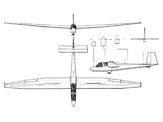 | Infos techniques | Biplace d'école, destiné à remplacer le Caudron C-800. Ailes et empennages en bois, en partie recouvert de contreplaqué, en partie entoilés. Fuselage en tubes d'acier avec entoilage. (Extrait du document publicitaire Bréguet) La voilure, de forme en plan rectangulaire près du fuselage et trapézoïdale aux extrémités d'aile, était monolongeron, avec caisson de bord d'attaque revêtu de contreplaqué mais soutenu par un réseau de becs de nervures, tandis que la partie arrière, classique, était entoilée. Le profil était un NACA 63 évolutif, II y avait des aérofreins, faisant saillie perpendiculairement, de l'extrados comme de l'intrados, mais pas de volets. Les ailerons étaient à fente. Le fuselage comportait une structure travaillante en tubes d'acier soudés, renforcés localement par des lisses ou des éléments en contreplaqué. Le revêtement était un entoilage, dans l'ensemble, mais la pointe avant était constituée d'une pièce de stratifié verre-résine. Les 2 postes étaient fermés par des verrières articulées, chacune constituée d'une seule pièce de plexiglass. L'empennage horizontal comportait un plan fixe d'une seule pièce, avec un monolongeron arrière fermant un caisson de bord d'attaque sans nervures, en sandwich contreplaqué/Klegécell. La profondeur, nervurée classiquement, était entoilée. La dérive était également monolongeron, mais avec un caisson raidi par des nervures. La gouverne était construite de manière analogue à la profondeur. L'atterrisseur principal comportait une seule roue, non escamotable, de 355 x 150, la commande de frein (hydraulique) était couplée à celle des aérofreins , Comme sur tous les planeurs Breguet, les commandes de vol étaient rigides, pour l'ensemble des gouvernes, à l'exception des commandes de la direction et du tab de profondeur qui s'effectuaient par câbles. L'appareil pouvait être équipé, sur option, d'un poste radio VHF, et d'une installation d'oxygène. Le démontage s'effectuait, ailes séparément, empennage horizontal d'une seule pièce. Il ne nécessitait aucun outillage spécial. Les commandes sont rigides, montées sur roulements ou bagues en bronze, à l'exception de la commande de direction réalisée par câble. Les empennages comportent des gouvernes entoilées. Le plan fixe est d'une seule pièce, traitée en caisson pur, en sandwich, à titre d'essai. la dérive est monolongeron avec caisson de bord d'attaque. L'atterrisseur se compose d'une roue ERAM avec frein hydraulique à double garniture et d'une béquille amortie arrière. L'équipement permet de couvrir toute la gamme des vols possibles à ce jour, incluant PSV, oxygène, radio, avec réseau électrique de bord 12V. Il est évident que sur ce poste toutes les variantes restent possibles. Par opposition à la réalisation du prototype qui comportait des points communs avec les planeurs 901 ou 904 pour des raisons de délais, la mise en série est conduite dans le but de standardiser et de simplifier les pièces de base, ainsi que la réalisation de la structure (notamment la voilure pour laquelle un essai de fabrication en corps creux est prévu). | ||||||